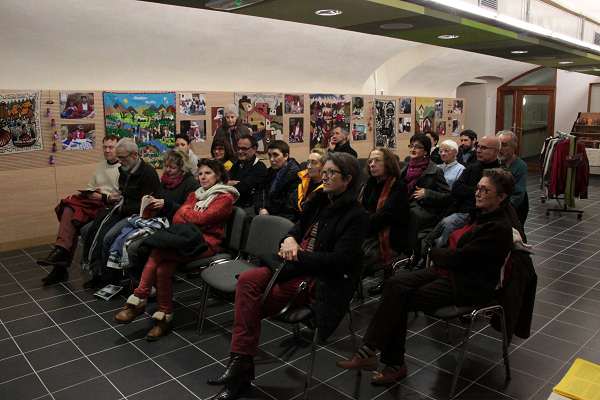 Stand pendant la semaine Histoires d'Amérique latine de Saint-Péray et Intervention d'Olivier Lagarde, autour de la paix en Colombie.