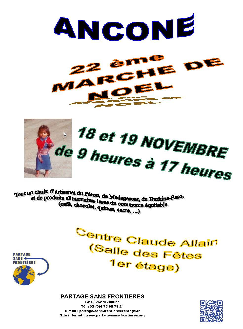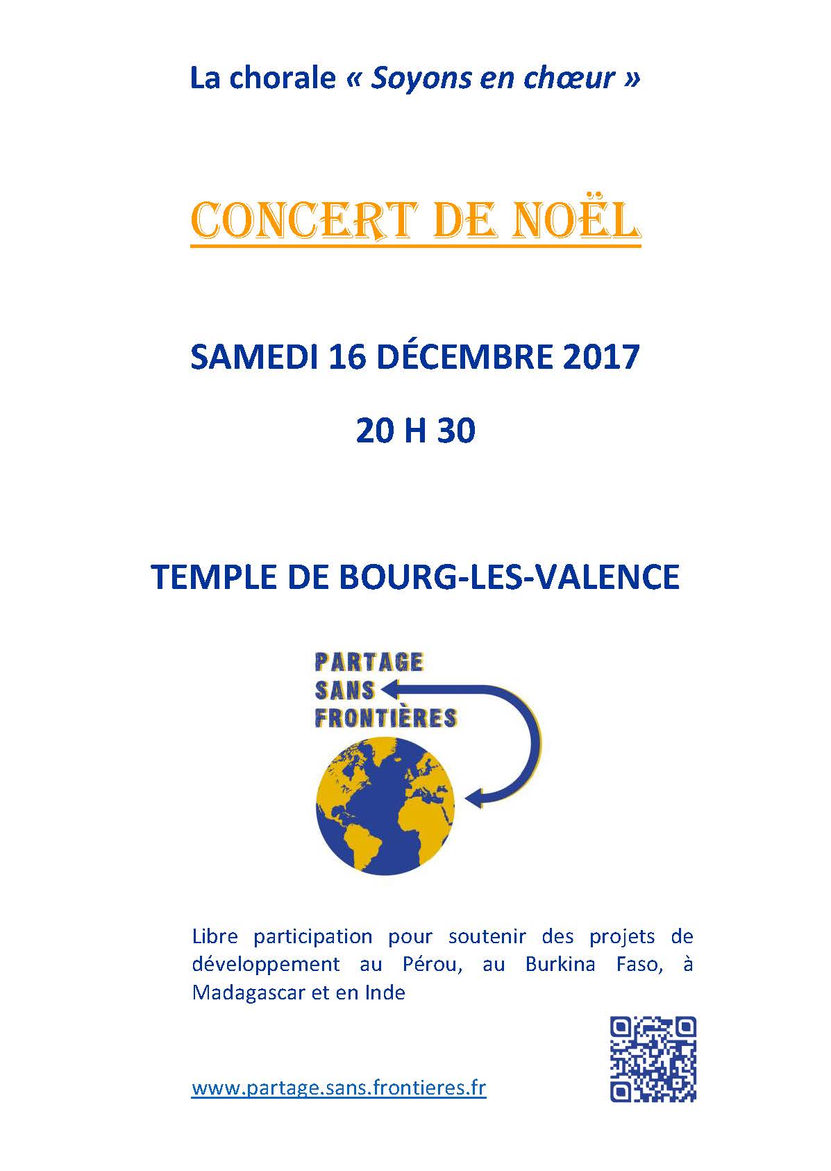 le 16/12/2017 à Temple protestant unie de Bourg-lès-Valence (26)Le fichier en PDF à télécharger ... [lire la suite] NOEL SOLIDAIRE avec PARTAGE SANS FRONTIERES