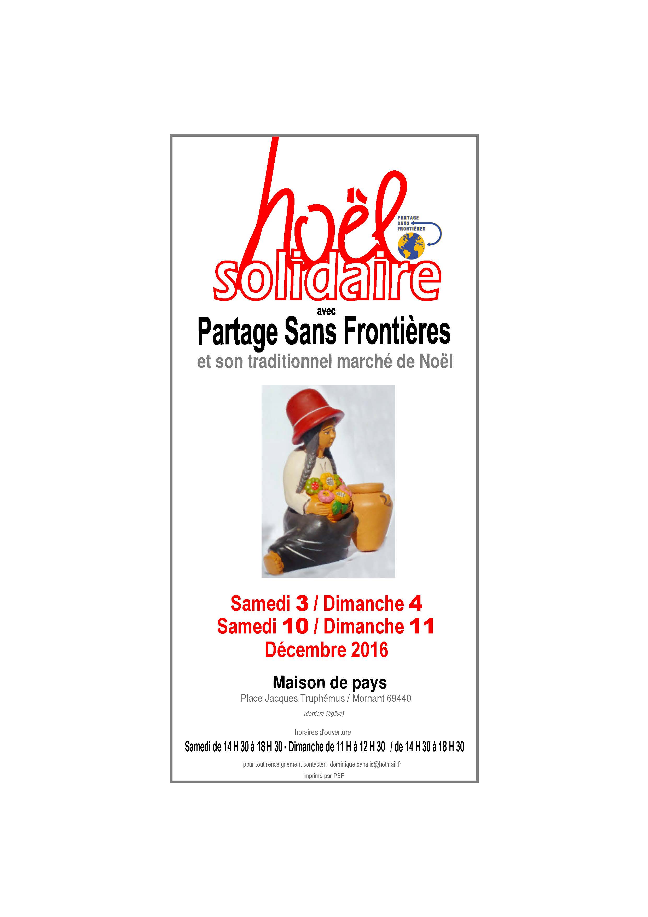 Ouvrir la photo Nous avons le très grand plaisir de vous inviter à venir aux marchés de Noël organisés par notre équipe de Mornant. Elle prépare toute l'année cette très belle manifestation dans le cadre des ateliers du coeur qui permettent aussi et bien entendu du 03/12/2016 au 11/12/2016 Le fichier en PDF à télécharger ... [lire la suite]