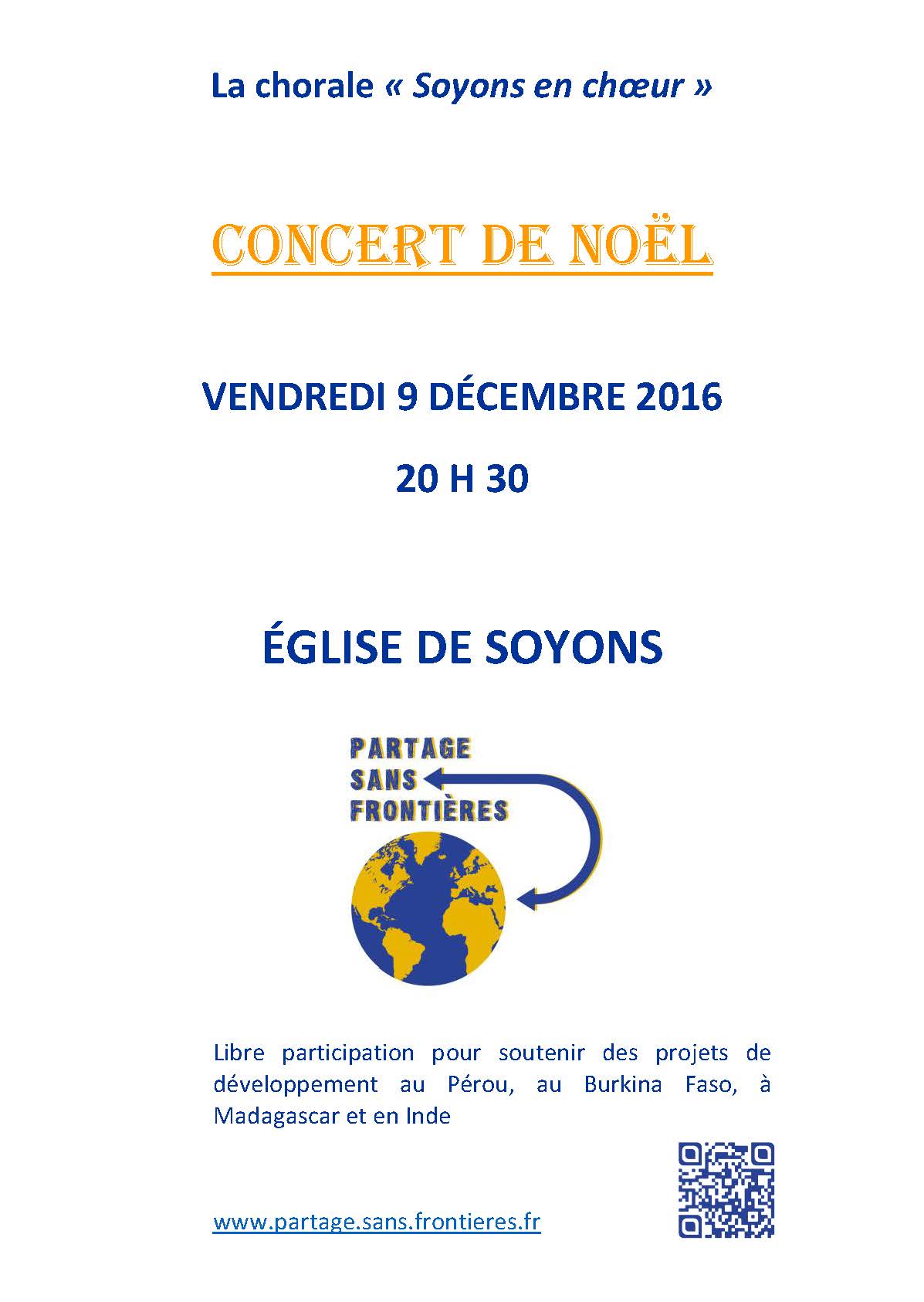 Ouvrir la photo Nous avons la joie de vous inviter au concert de Noël de la chorale de Soyons qui sera donné en l'église de Soyons au profit de Partage Sans Frontières. Grand merci aux membres de la chorale et à sa chef de choeur qui ne nous oublie pas... C'est à 20h30, ne soyez le 09/12/2016 à Eglise de Soyons