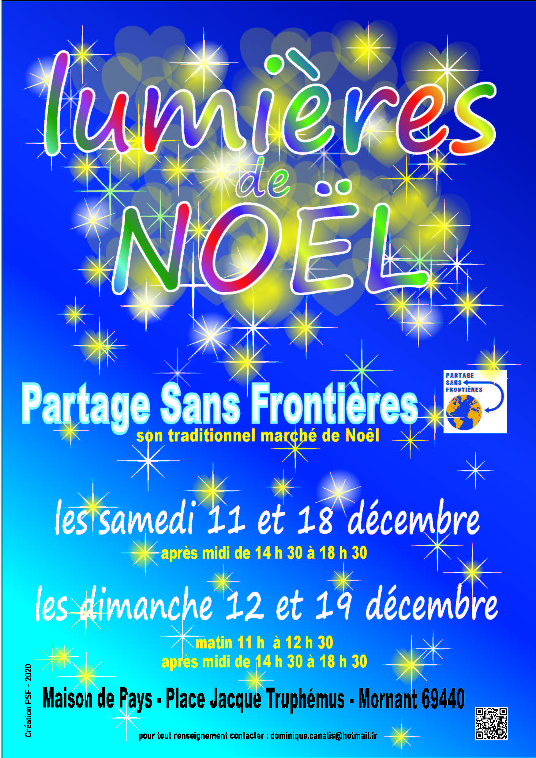 Nous avons le plaisir de vous inviter à venir nous rencontrer lors du traditionnel marché de Noël de Partage sans Frontières à Mornant :