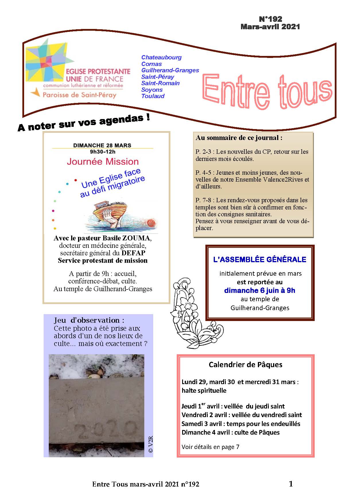 Merci à toute l’équipe du journal Entre-Tous de nous avoir réservé un peu de place dans l’Entre-Tous 192.