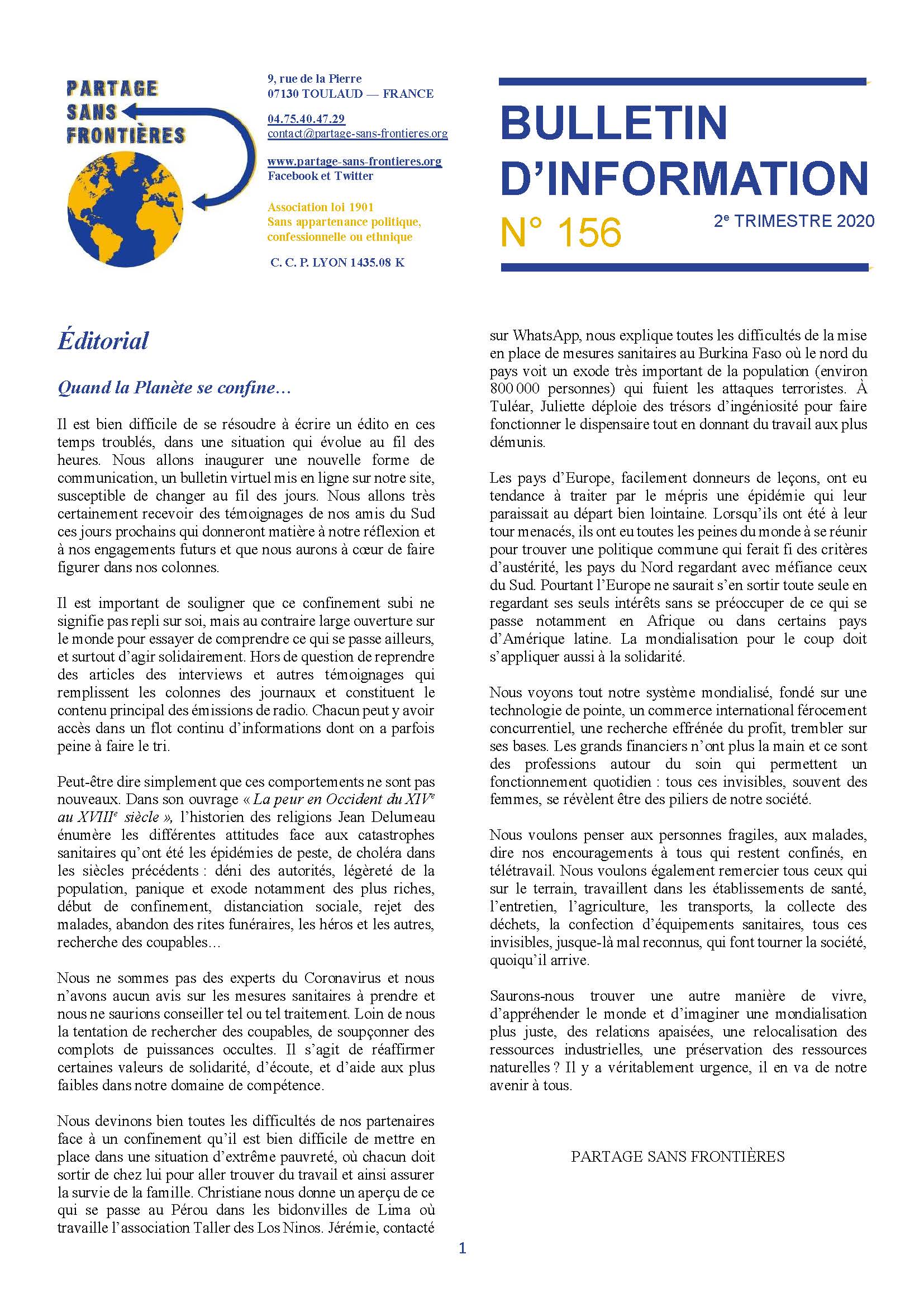 Bulletin 156 du 2e trimestre 2020